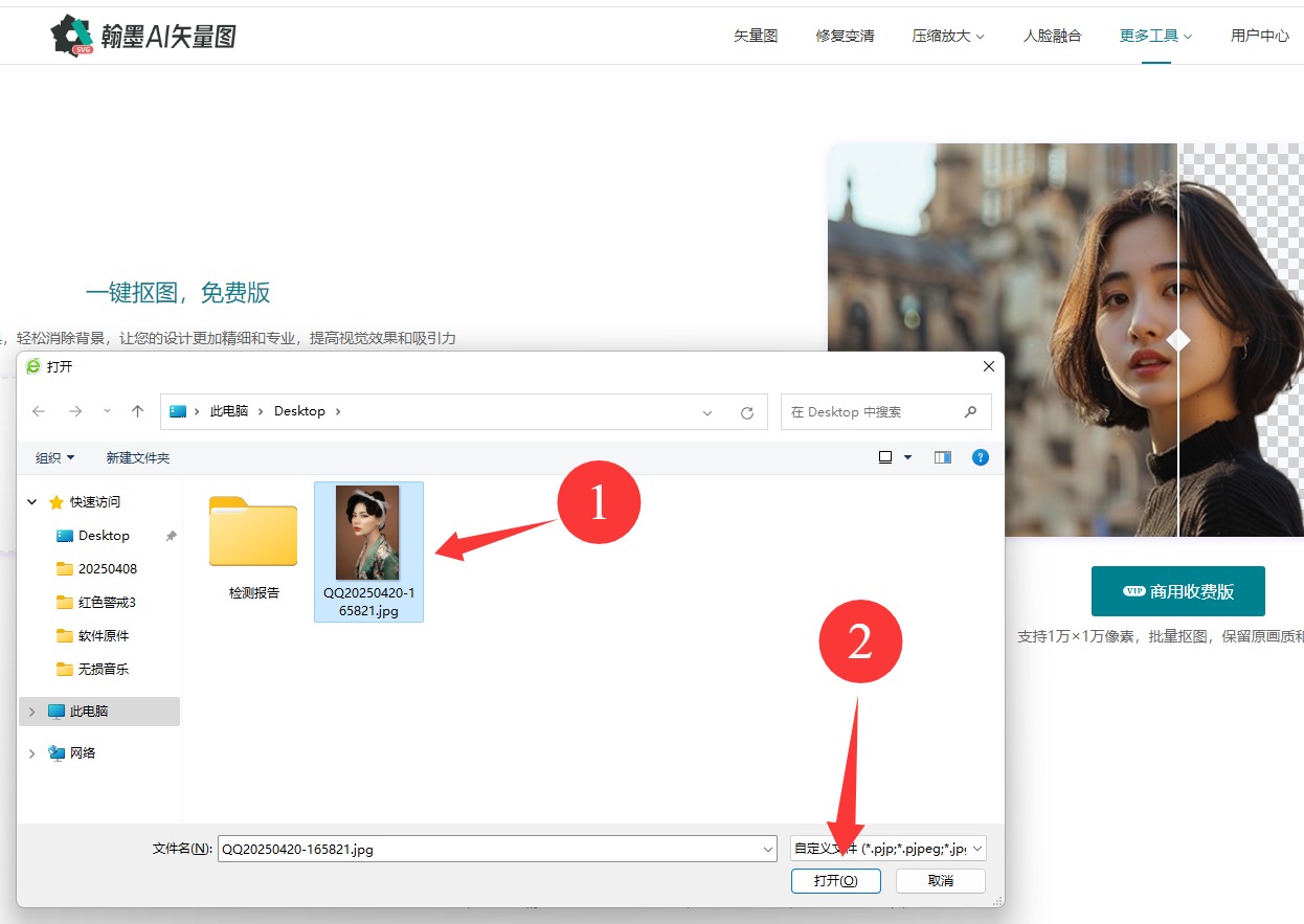 2、然后打開翰墨ai摳圖網(wǎng)頁版入口,再將照片進行上傳;