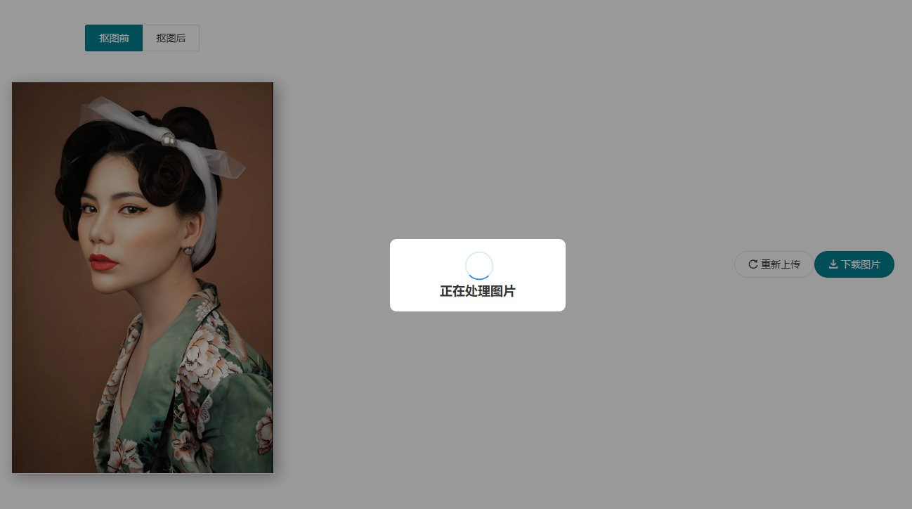 3、上傳后ai摳圖軟件自動識別并進行處理,只需要一兩秒時間即可完成;