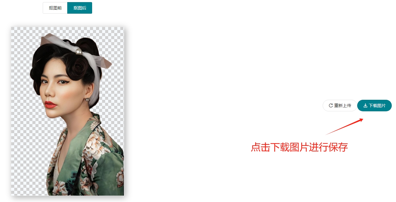 4、確定摳出的圖像沒有問題即可點擊右側(cè)的下載按鈕將ai摳圖出來的透明底PNG格式的素材文件保持到電腦或者手機即可;