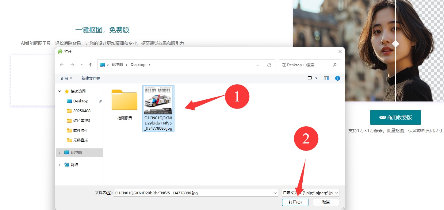 按照下圖所示步驟上傳,進(jìn)行免費(fèi)自動(dòng)ai摳圖
