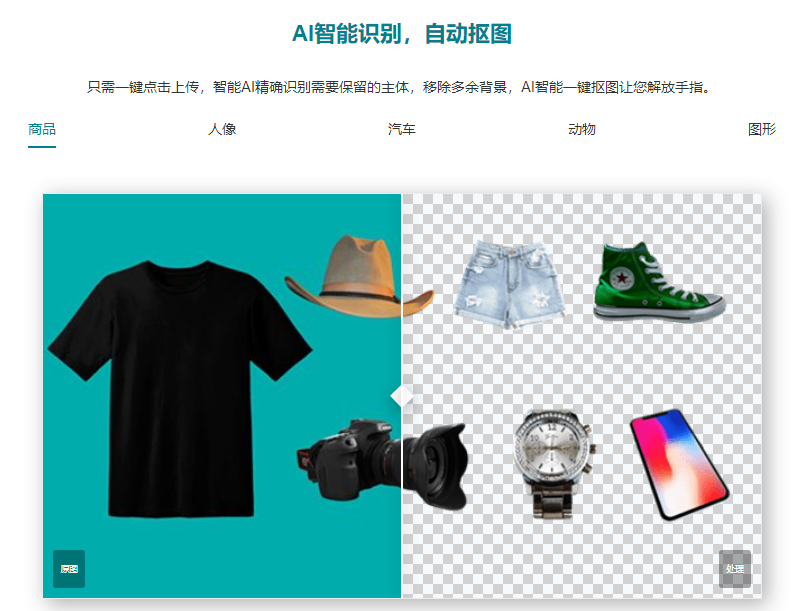 從上面的電商主圖摳圖效果來(lái)看,可以很好地自動(dòng)識(shí)別主圖中的車模圖案,將其它的文字以及圖案都清理得干干凈凈,如果你需要為自己的同款商品制作主圖,可以直接在ai摳圖免費(fèi)網(wǎng)頁(yè)版獲取的PNG透明底圖上添加底色,或者使用ai摳圖網(wǎng)頁(yè)將其它商品主圖上的元素?fù)赋鰜?lái)添加到此電商主圖上,就可以根據(jù)自己的需求使用智能ai制作獨(dú)一無(wú)二的電商主圖組合,給自己的商品增加吸引力。